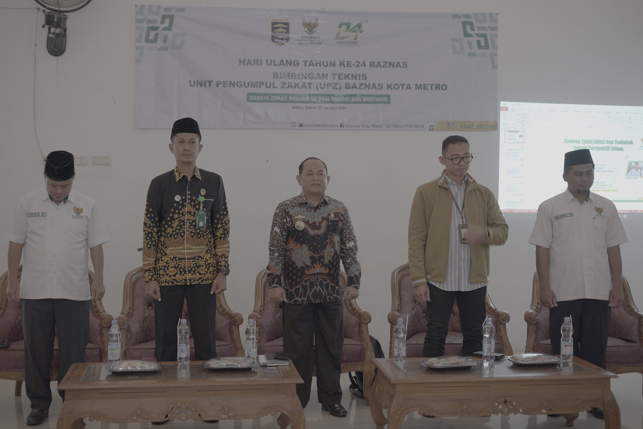 Badan Amil Zakat Nasional (BAZNAS) Kota Metro menyelenggarakan peringatan Milad ke- 24 sekaligus Bimbingan Teknis (Bimtek) pengelolaan zakat yang dihadiri oleh perwakilan seluruh Organisasi Perangkat Daerah (OPD) di Kota Metro berlangsung pada Kamis (23/01/2025), di Wisma Haji Al-Khairiyah setempat.